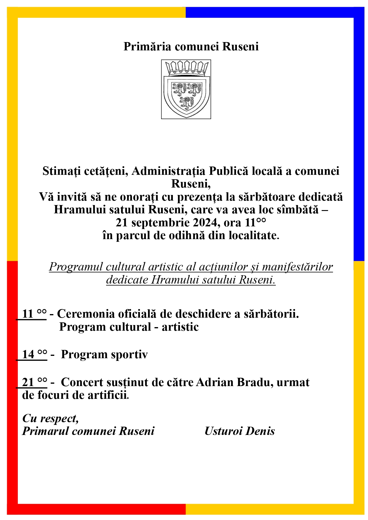 Invitație la sărbătoarea dedicată Hramului satului Ruseni!